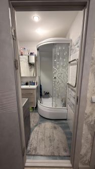 В квартире остается: кухонный гарнитур, варочная газовая панель, вытяжка, 2 сплит-системы (кондиционеры), в ванной комнате-водонагреватель Haier на 50 литров, что значительно экономит расход горячей воды, шкаф-зеркало, тумба под раковину, душевая кабина. Во всех комнатах остаются карнизы для штор, люстры и светильники.