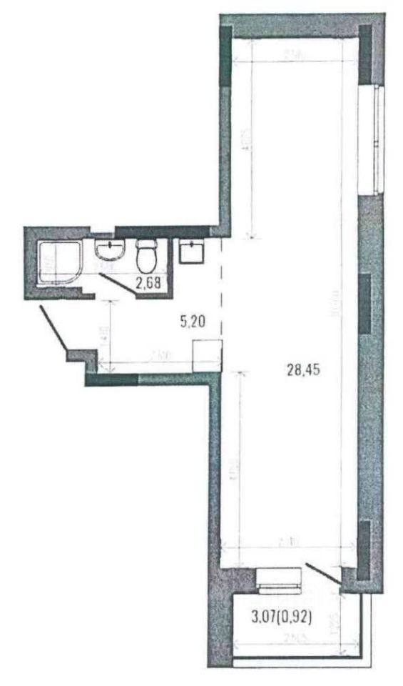 Однокомнатная 36,6 м2, кухня-гостиная 17м2