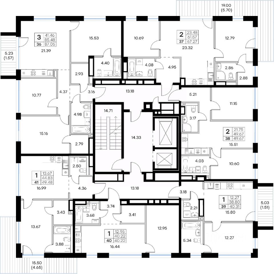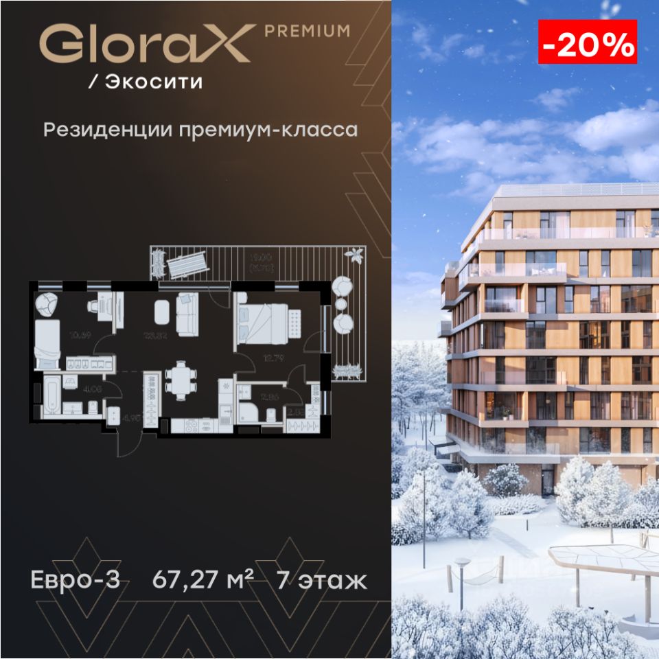 Продается 2-комн. квартира на 7-м этаже в строящемся проекте премиум-класса GloraX Premium Экосити. Общая площадь лота составляет 67,27 кв. м, из которых 23,48 кв. м отведено под жилую и 23,32 кв. м под кухонную зону. Номер квартиры - 37
