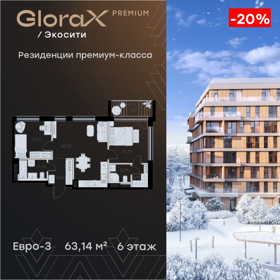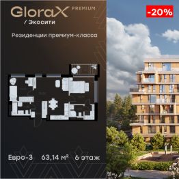 Продается 2-комн. квартира на 6-м этаже в строящемся проекте премиум-класса GloraX Premium Экосити. Общая площадь лота составляет 63,14 кв. м, из которых 23,48 кв. м отведено под жилую и 23,32 кв. м под кухонную зону. Номер квартиры - 75