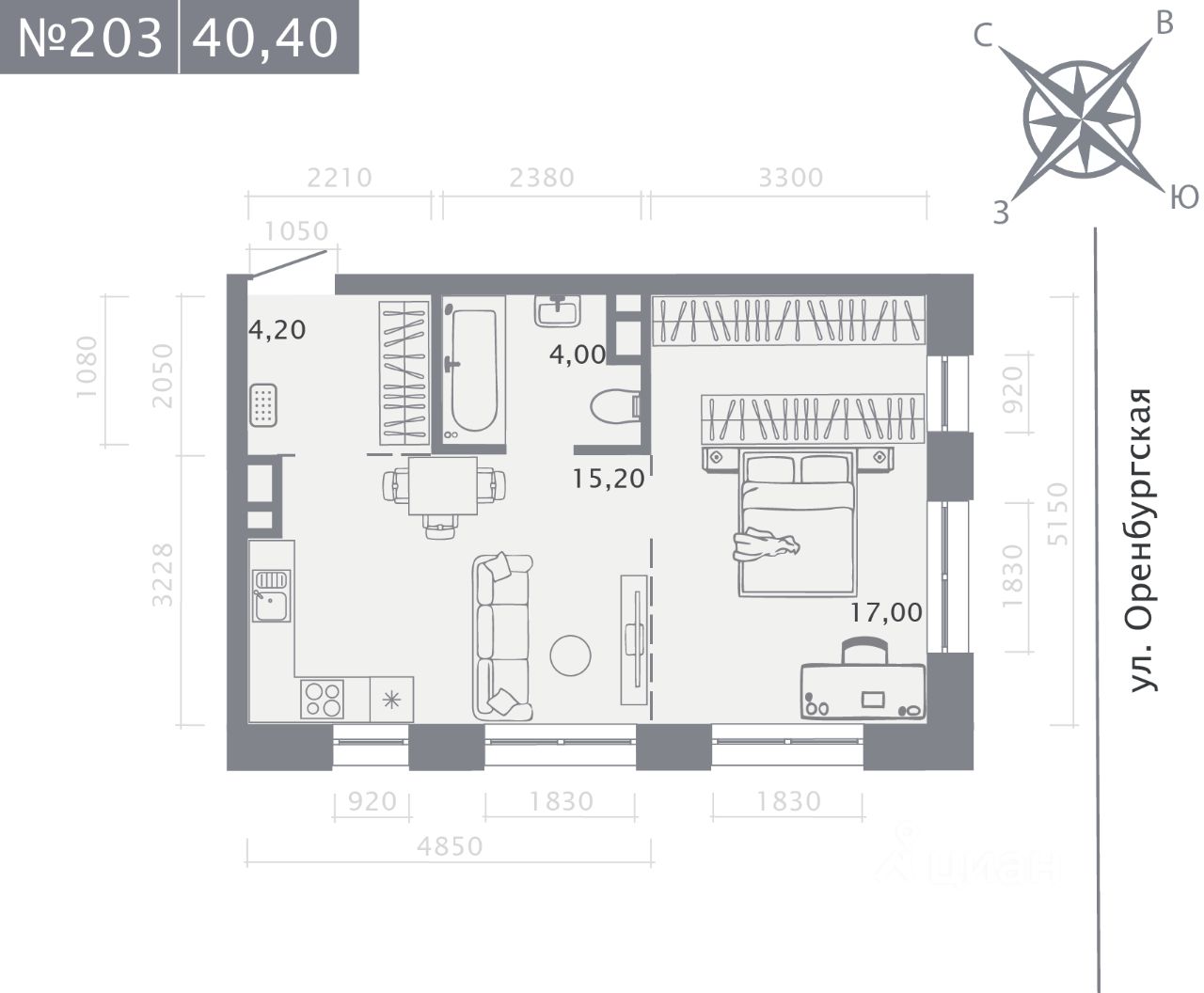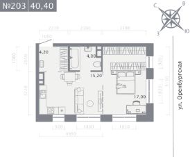 Продаётся 1-комнатная квартира в строящемся доме (Корпус 2 (2 этап)), срок сдачи: IV-кв. 2028, общей площадью 40.4 кв.м., на 2 этаже. Новый жилой комплекс "Оригана" от застройщика "КамаСтройИнвест" расположен по адресу: Россия, Республика Татарстан, Казань, улица Оренбургский Тракт