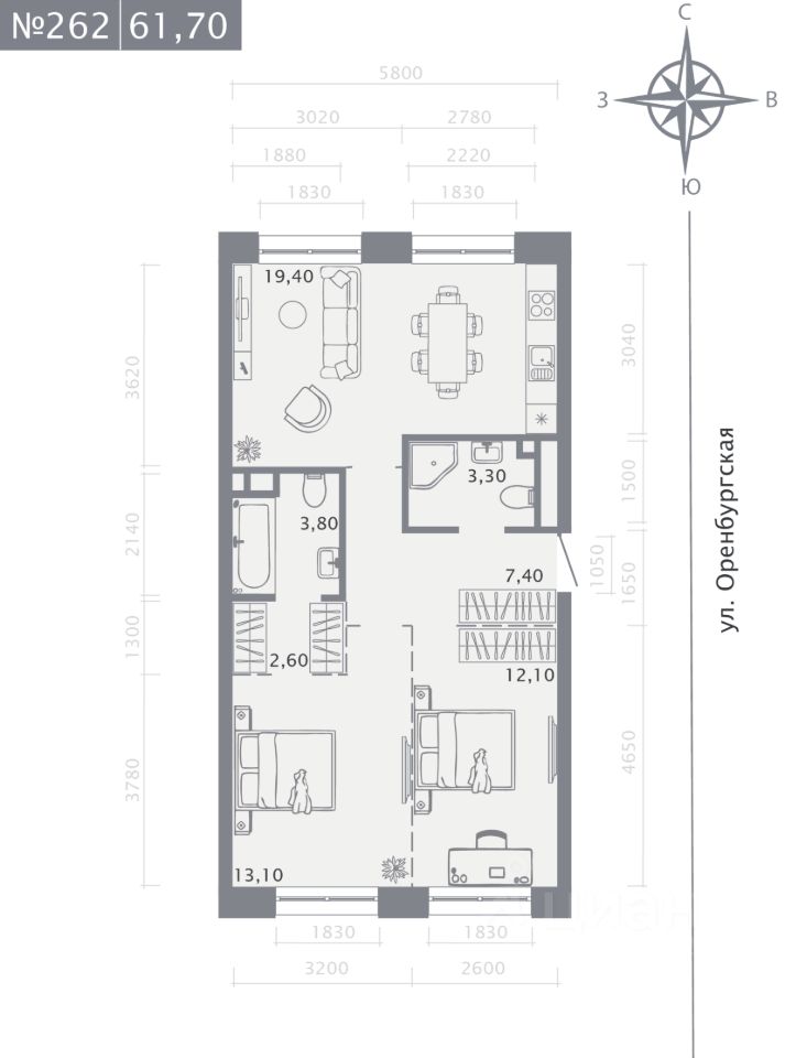 Продаётся 2-комнатная квартира в строящемся доме (Корпус 2 (2 этап)), срок сдачи: IV-кв. 2028, общей площадью 61.7 кв.м., на 2 этаже. Новый жилой комплекс "Оригана" от застройщика "КамаСтройИнвест" расположен по адресу: Россия, Республика Татарстан, Казань, улица Оренбургский Тракт