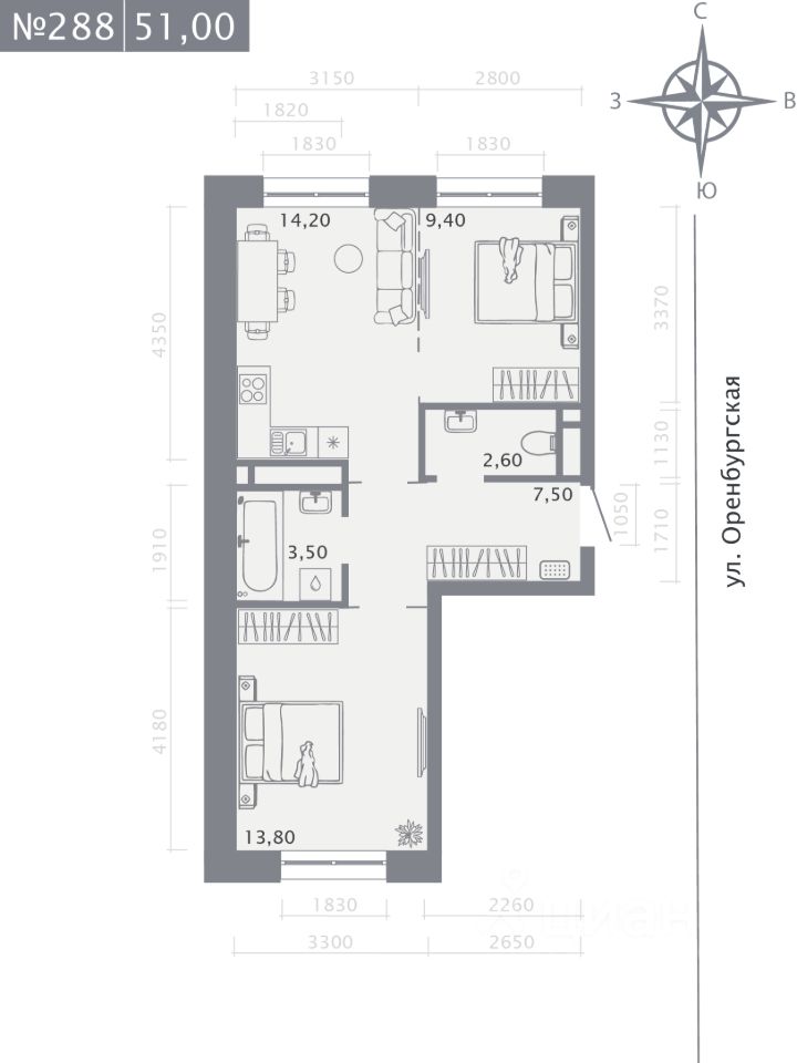 Продаётся 2-комнатная квартира в строящемся доме (Корпус 2 (2 этап)), срок сдачи: IV-кв. 2028, общей площадью 51 кв.м., на 2 этаже. Новый жилой комплекс "Оригана" от застройщика "КамаСтройИнвест" расположен по адресу: Россия, Республика Татарстан, Казань, улица Оренбургский Тракт