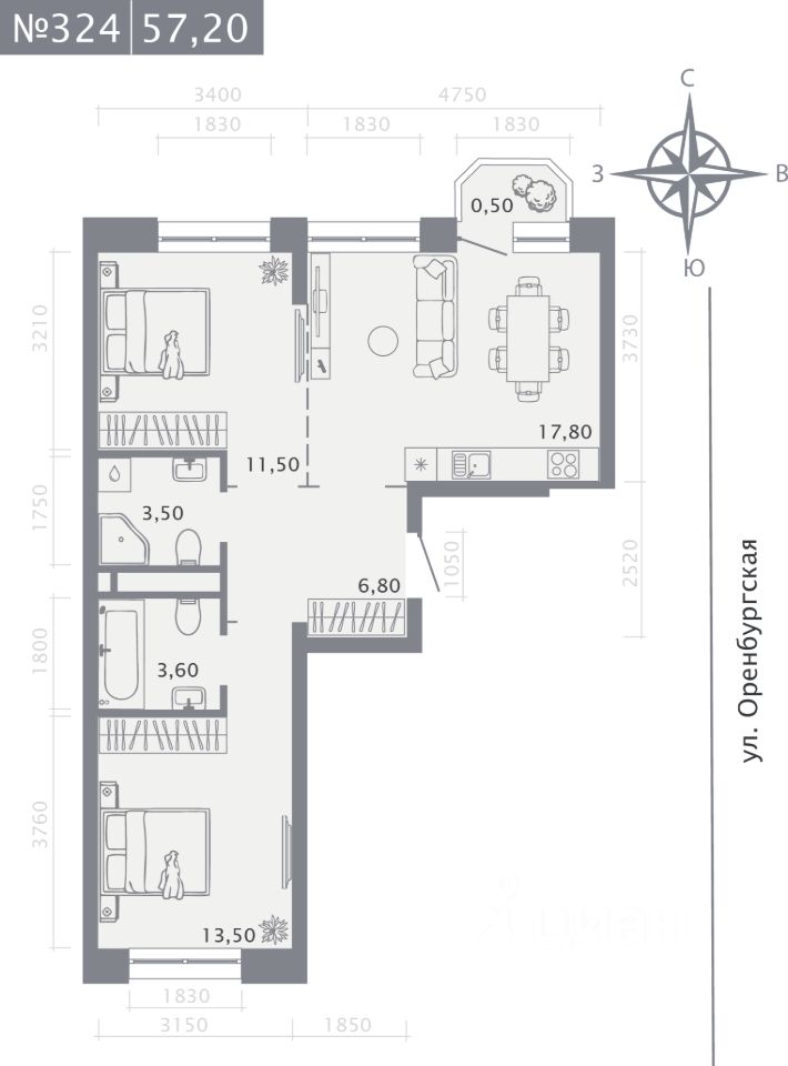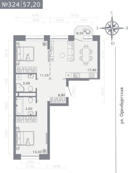 Продаётся 2-комнатная квартира в строящемся доме (Корпус 2 (2 этап)), срок сдачи: IV-кв. 2028, общей площадью 57.2 кв.м., на 4 этаже. Новый жилой комплекс "Оригана" от застройщика "КамаСтройИнвест" расположен по адресу: Россия, Республика Татарстан, Казань, улица Оренбургский Тракт