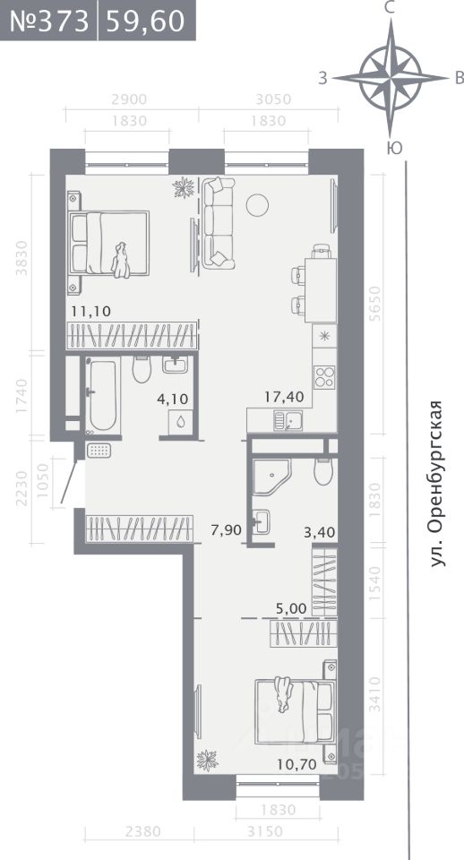 Продаётся 2-комнатная квартира в строящемся доме (Корпус 2 (2 этап)), срок сдачи: IV-кв. 2028, общей площадью 59.6 кв.м., на 2 этаже. Новый жилой комплекс "Оригана" от застройщика "КамаСтройИнвест" расположен по адресу: Россия, Республика Татарстан, Казань, улица Оренбургский Тракт