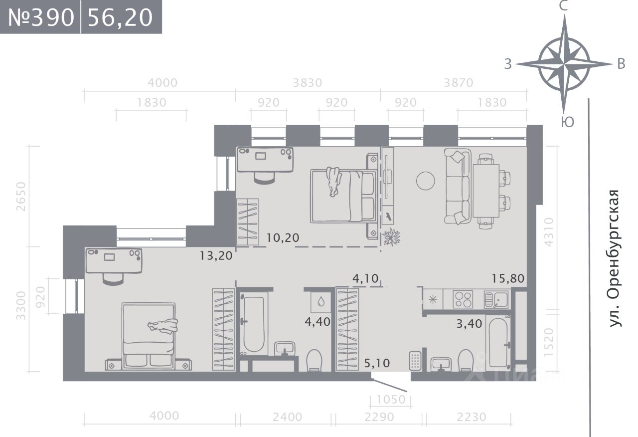 Продаётся 2-комнатная квартира в строящемся доме (Корпус 2 (2 этап)), срок сдачи: IV-кв. 2028, общей площадью 56.2 кв.м., на 4 этаже. Новый жилой комплекс "Оригана" от застройщика "КамаСтройИнвест" расположен по адресу: Россия, Республика Татарстан, Казань, улица Оренбургский Тракт