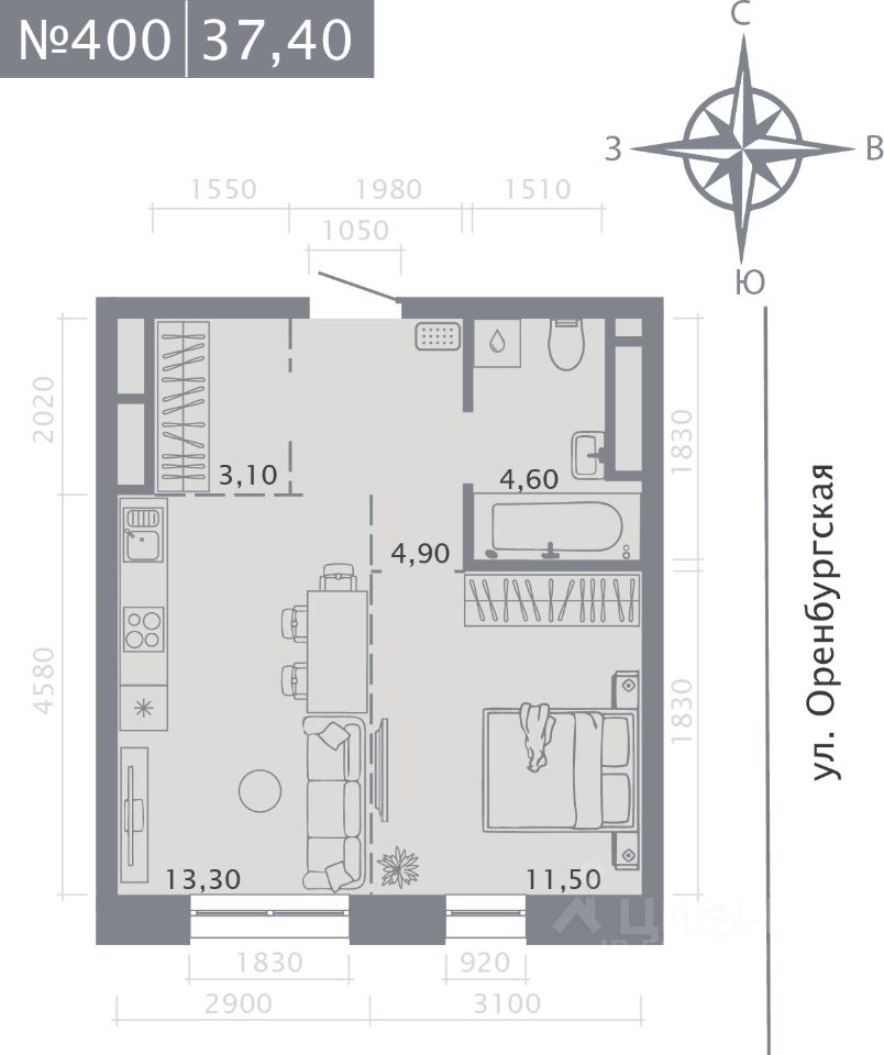 Продаётся 1-комнатная квартира в строящемся доме (Корпус 2 (2 этап)), срок сдачи: IV-кв. 2028, общей площадью 37.4 кв.м., на 6 этаже. Новый жилой комплекс "Оригана" от застройщика "КамаСтройИнвест" расположен по адресу: Россия, Республика Татарстан, Казань, улица Оренбургский Тракт