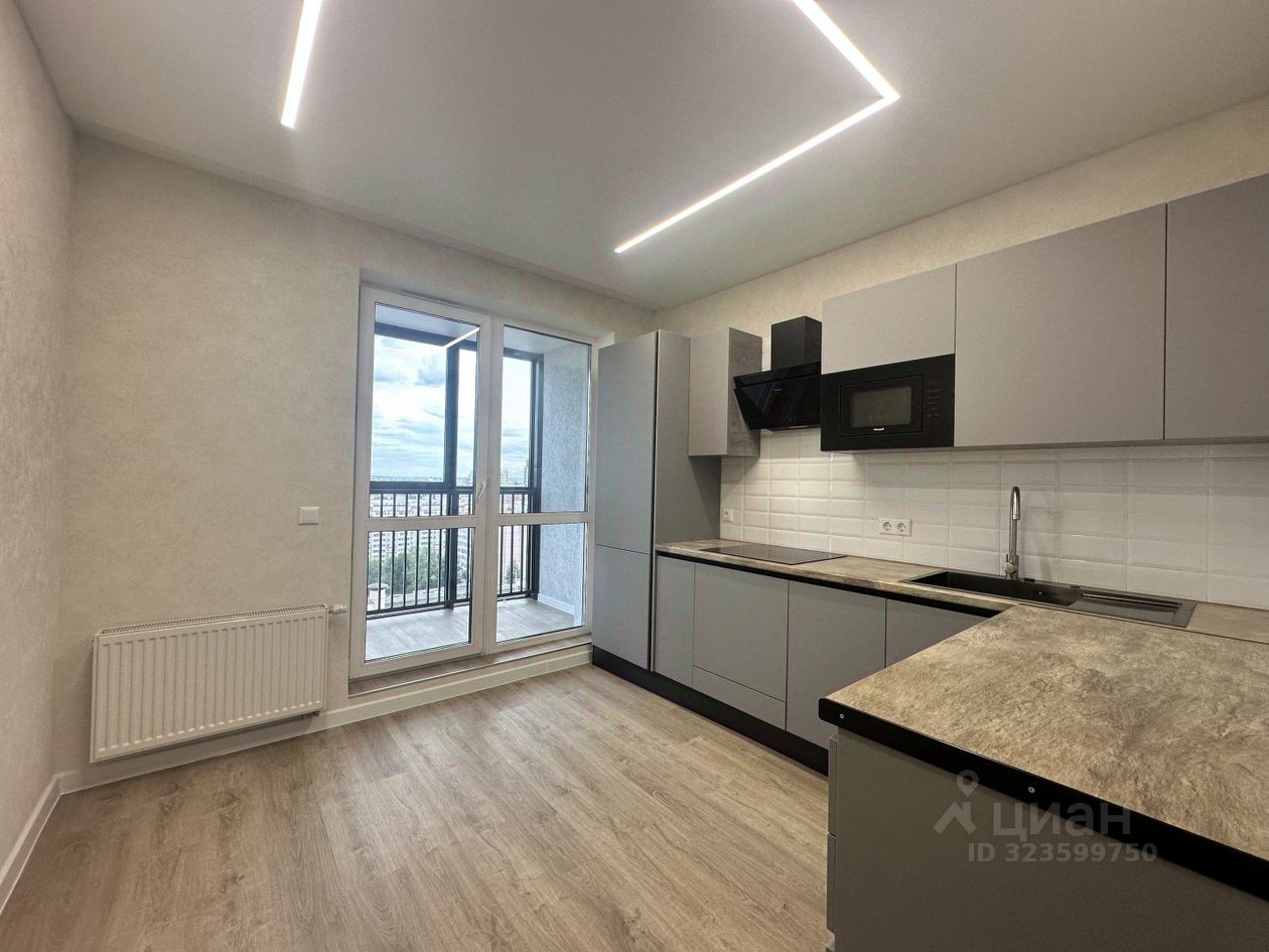 Просторная комната, правильной формы, отделка в светлых тонах. Общая площадь 34,4 кв.м., Кухня большая с встроенной техникой. Ванная комната в кафеле. С окон красивый вид на Казанку и кремль.