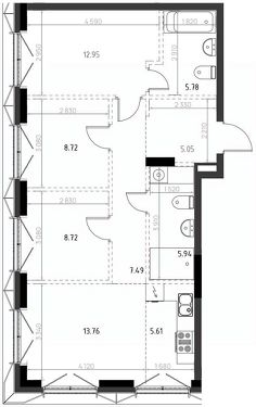 Продается 2-комн. квартира, 74,02 м²