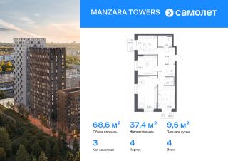 Строим кварталы для жизни с заботой о будущем. Предлагается 3-комнатная квартира комфорт-класса 68,58 кв.м в корпусе 4 на 4 этаже, в MANZARA TOWERS