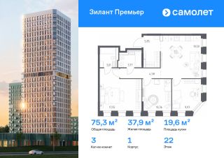 Строим кварталы для жизни с заботой о будущем. Предлагается 3-комнатная квартира комфорт-класса 75,28 кв.м в корпусе 1 на 22 этаже, в ЖК "Зилант Премьер" Квартира с предчистовой отделкой. Доступность дополнительных опций уточняйте у застройщика. Приобрести квартиру возможно по специальным акциям от застройщика, с текущими условиями акций можно ознакомиться в блоке "Акций". Цена динамическая и может отличаться, уточняйте актуальность у застройщика. Жилой комплекс "Зилант Премьер" расположен в молодом районе города. До кремля — 20 минут на авто. В получасе пешком — метро "Горки". Рядом Горкинско-Ометьевский лес, 3 школы, 2 детских сада и поликлиника, скоро откроется свой детский сад. Дома высотой от 1 до 25 этажей с фасадами, которые оживляют открытые французские балконы. В уютном дворе — детские площадки и воркаут-зона.