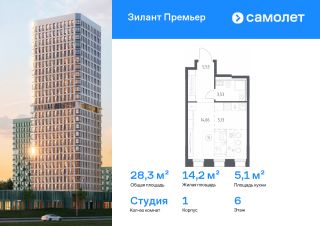 Строим кварталы для жизни с заботой о будущем. Предлагается квартира студия комфорт-класса 28,25 кв.м в корпусе 1 на 6 этаже, в ЖК "Зилант Премьер"
