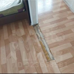 Практичное напольное покрытие: полы выровнены, уложен линолеум. Совмещенный санузел, обшитый плиткой (недочеты в фотографиях)