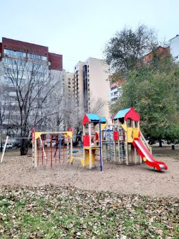 Дворовая территория с детской и спортивной площадкой, минифутбольное поле. Двор очень зелёный летом и уютный.
