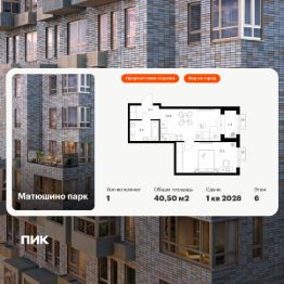 Продаётся 1-комн. квартира площадью 40,5 кв.м на 6 этаже 17 этажного дома (Корпус 3, Секция 1) проекта ПИК Матюшино парк. Светлый просторный подъезд на уровне земли, функциональная планировка, большие окна, предчистовая отделка.