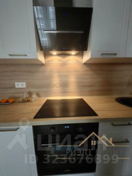 Укомплектована техникой: духовой шкаф, варочная поверхность, встроенная вытяжка.