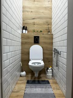 Туалет и ванная комната раздельные, стены выложены кафелем.