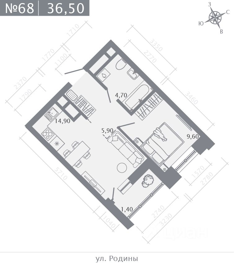 Продаётся 1-комнатная квартира в строящемся доме (Корпус 1), срок сдачи: II-кв. 2028, общей площадью 36.5 кв.м., на 9 этаже.