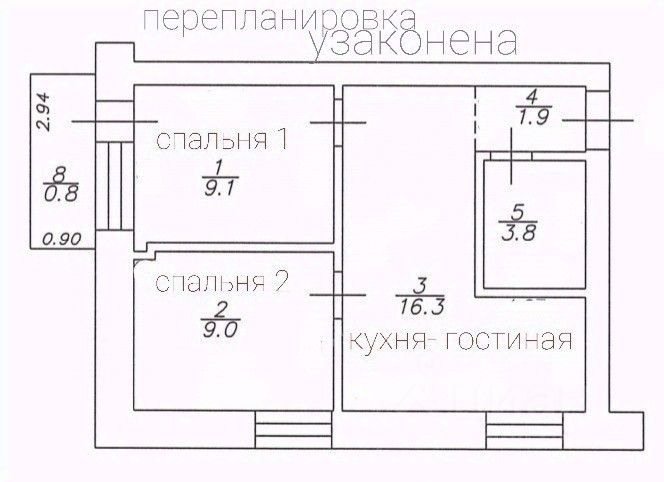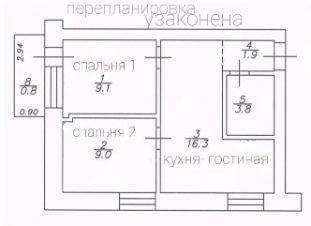 Арт. 125114375 Просторная кухня- гостиная+ 2 СПАЛЬНИ. Мебель/техника остаются. Кухня- гостиная 16м²/2 спальни по 9м²/Санузел 4м