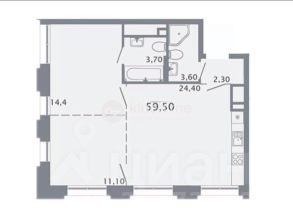 - Общая площадь: 59,5 кв. м.