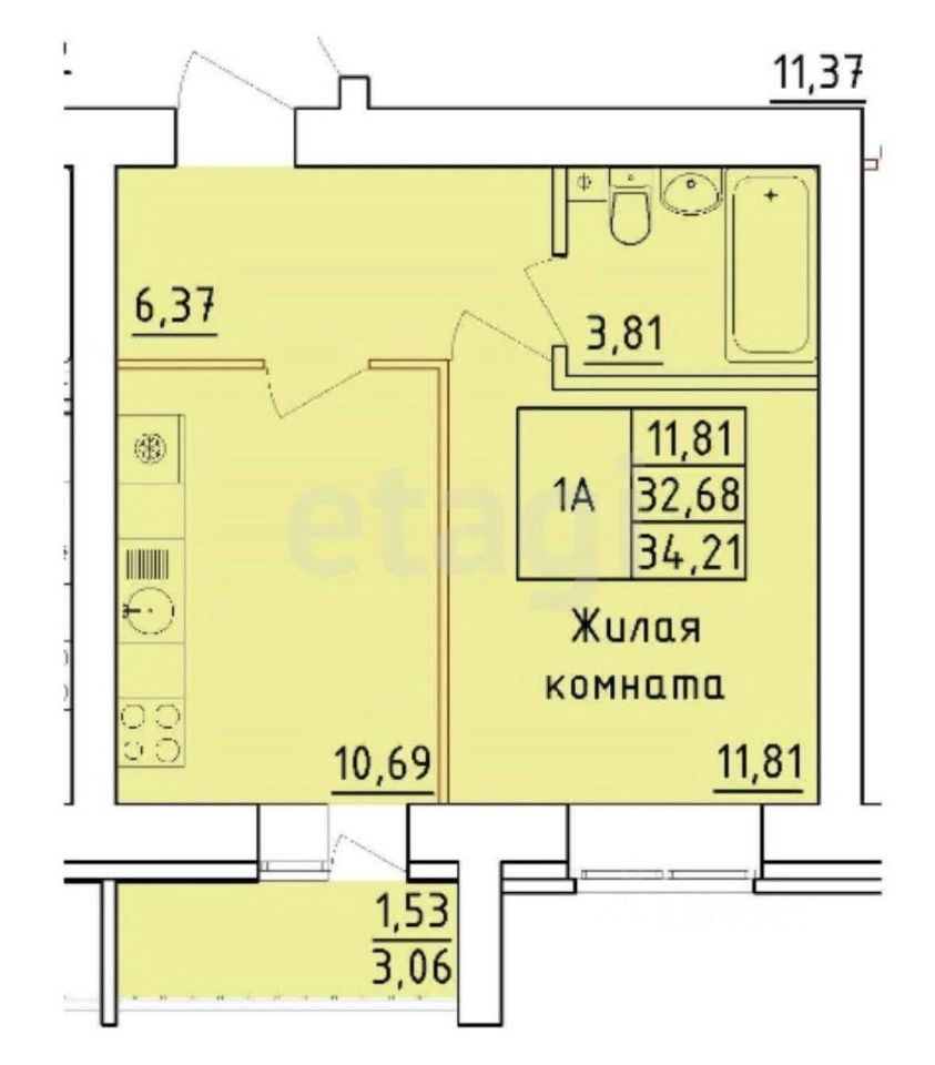 Кухня: 11 кв.м. — просторная, с выходом на остекленную лоджию 3,06 кв.м. Идеально для зоны отдыха.