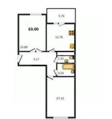 - Просторная общая площадь: 59.9 квадратных метров позволяет удобно разместить всю необходимую мебель и создать комфортные условия жизни.