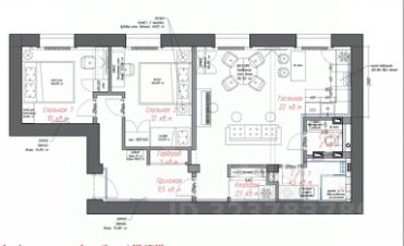 Отличная планировка: кухня-гостиная 22 м2, две спальни 12,5м2 и 11 м2, просторная прихожая 9,5 м2, санузел раздельный.