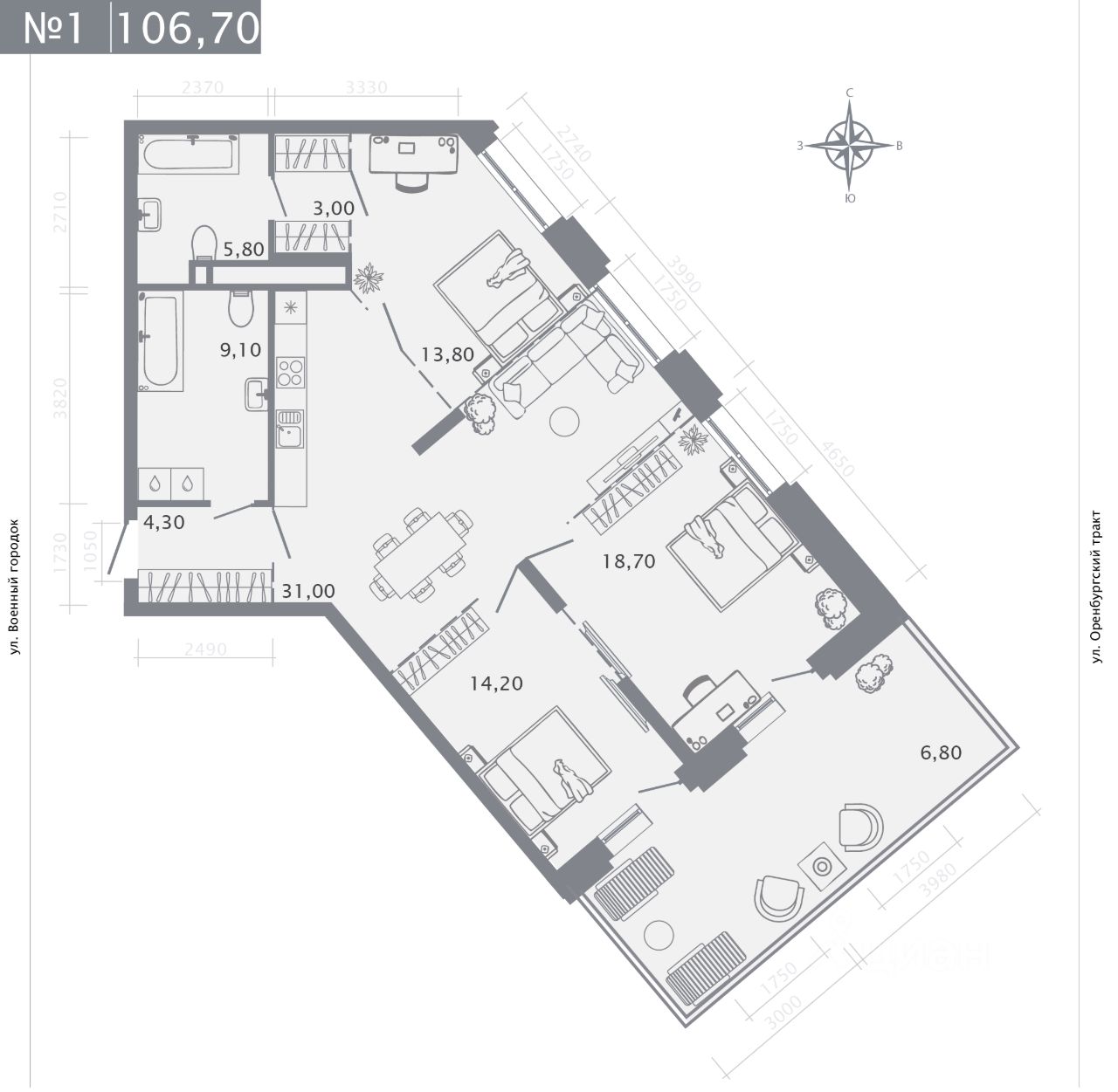 Продаётся 3-комнатная квартира в строящемся доме (Корпус 2 (2 этап)), срок сдачи: IV-кв. 2028, общей площадью 106.7 кв.м., на 2 этаже. Новый жилой комплекс "Оригана" от застройщика "КамаСтройИнвест" расположен по адресу: Россия, Республика Татарстан, Казань, улица Оренбургский Тракт