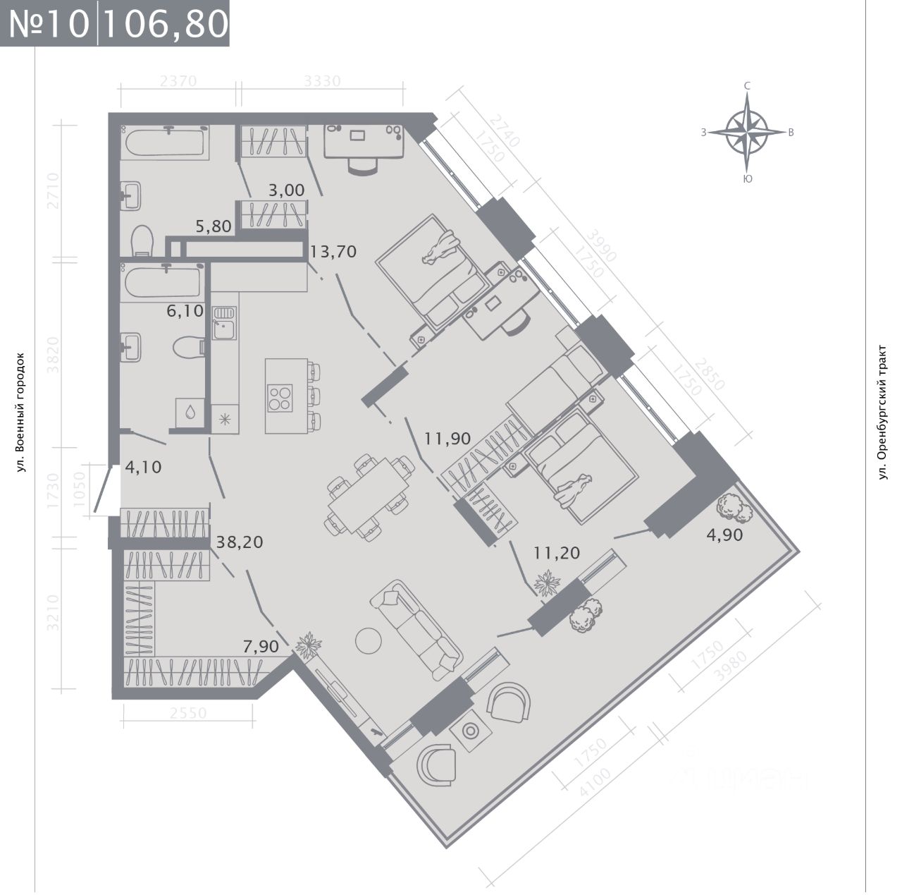 Продаётся 3-комнатная квартира в строящемся доме (Корпус 2 (2 этап)), срок сдачи: IV-кв. 2028, общей площадью 106.8 кв.м., на 3 этаже. Новый жилой комплекс "Оригана" от застройщика "КамаСтройИнвест" расположен по адресу: Россия, Республика Татарстан, Казань, улица Оренбургский Тракт