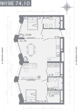 Продаётся 2-комнатная квартира в строящемся доме (Корпус 2 (2 этап)), срок сдачи: IV-кв. 2028, общей площадью 74.1 кв.м., на 25 этаже. Новый жилой комплекс "Оригана" от застройщика "КамаСтройИнвест" расположен по адресу: Россия, Республика Татарстан, Казань, улица Оренбургский Тракт