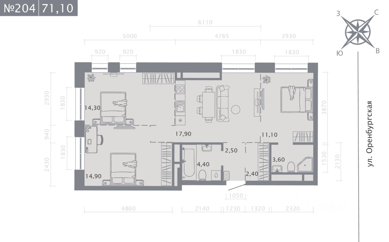 Продаётся 3-комнатная квартира в строящемся доме (Корпус 2 (2 этап)), срок сдачи: IV-кв. 2028, общей площадью 71.1 кв.м., на 2 этаже. Новый жилой комплекс "Оригана" от застройщика "КамаСтройИнвест" расположен по адресу: Россия, Республика Татарстан, Казань, улица Оренбургский Тракт