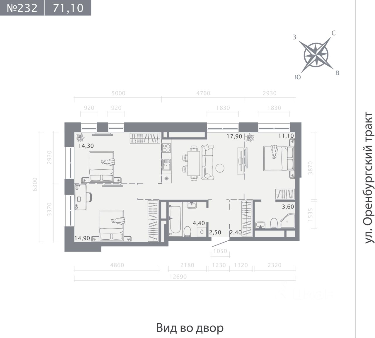 Продаётся 3-комнатная квартира в строящемся доме (Корпус 2 (2 этап)), срок сдачи: IV-кв. 2028, общей площадью 71.1 кв.м., на 8 этаже. Новый жилой комплекс "Оригана" от застройщика "КамаСтройИнвест" расположен по адресу: Россия, Республика Татарстан, Казань, улица Оренбургский Тракт