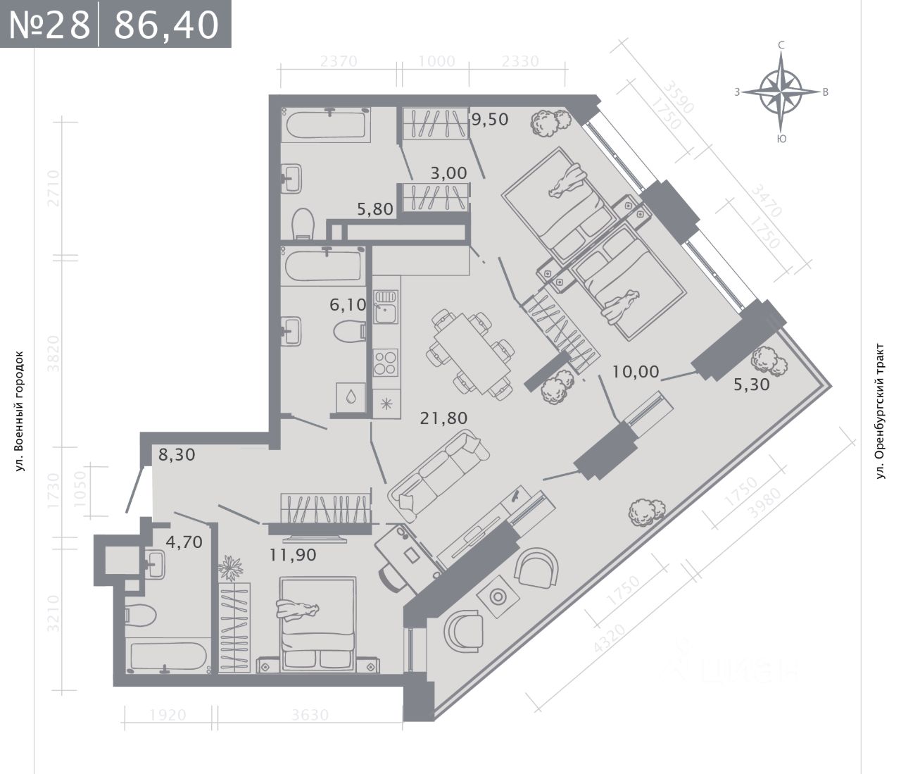 Продаётся 3-комнатная квартира в строящемся доме (Корпус 2 (2 этап)), срок сдачи: IV-кв. 2028, общей площадью 86.4 кв.м., на 5 этаже. Новый жилой комплекс "Оригана" от застройщика "КамаСтройИнвест" расположен по адресу: Россия, Республика Татарстан, Казань, улица Оренбургский Тракт