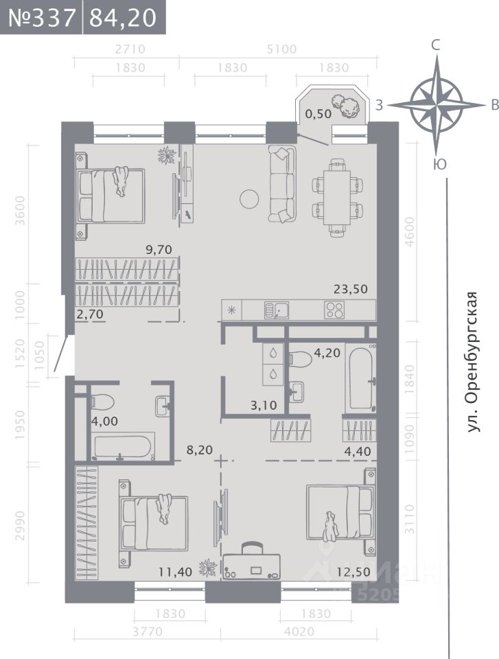 Продаётся 3-комнатная квартира в строящемся доме (Корпус 2 (2 этап)), срок сдачи: IV-кв. 2028, общей площадью 84.2 кв.м., на 8 этаже. Новый жилой комплекс "Оригана" от застройщика "КамаСтройИнвест" расположен по адресу: Россия, Республика Татарстан, Казань, улица Оренбургский Тракт