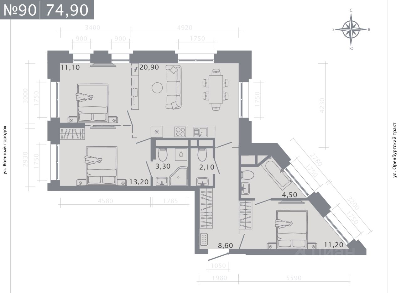 Продаётся 3-комнатная квартира в строящемся доме (Корпус 2 (2 этап)), срок сдачи: IV-кв. 2028, общей площадью 74.9 кв.м., на 11 этаже. Новый жилой комплекс "Оригана" от застройщика "КамаСтройИнвест" расположен по адресу: Россия, Республика Татарстан, Казань, улица Оренбургский Тракт