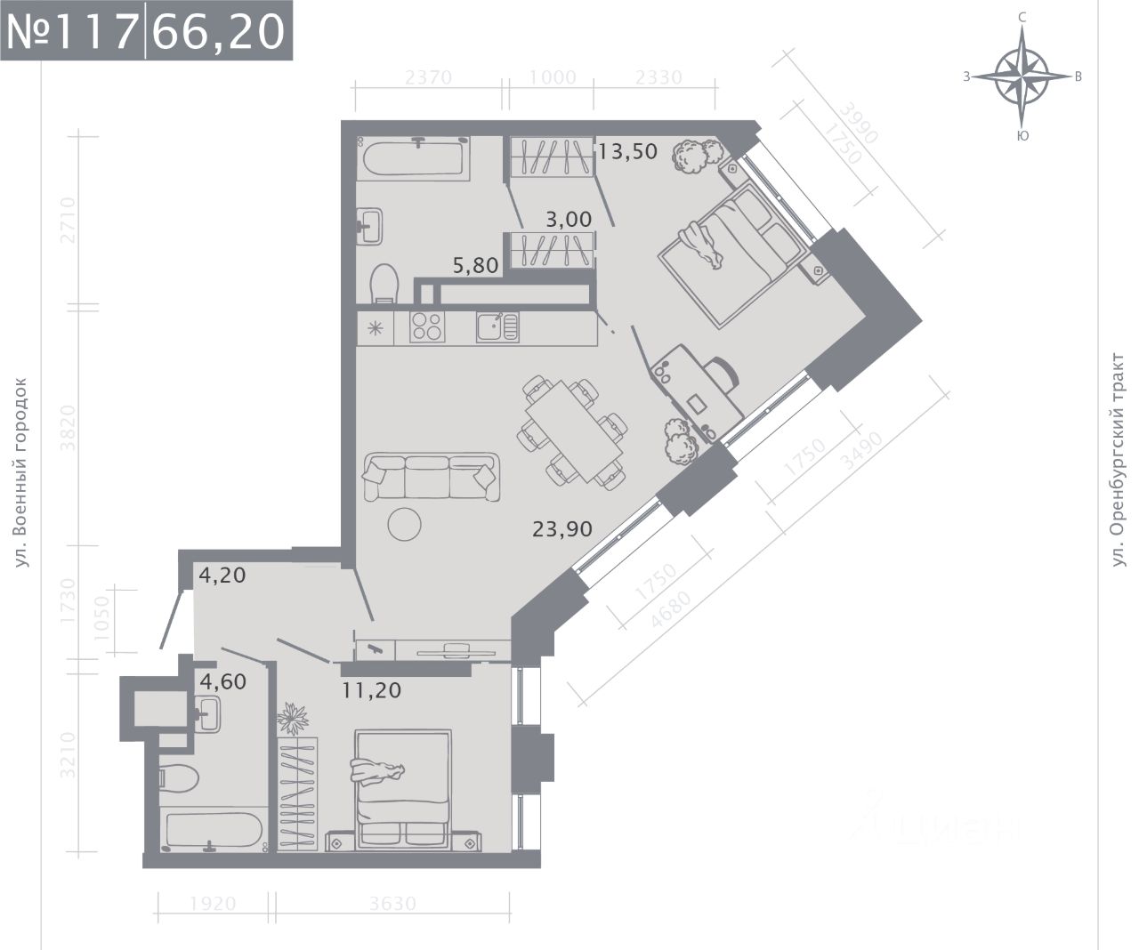 Продаётся 2-комнатная квартира в строящемся доме (Корпус 1), срок сдачи: II-кв. 2028, общей площадью 66.2 кв.м., на 15 этаже. Новый жилой комплекс "Оригана" от застройщика "КамаСтройИнвест" расположен по адресу: Россия, Республика Татарстан, Казань, улица Оренбургский Тракт