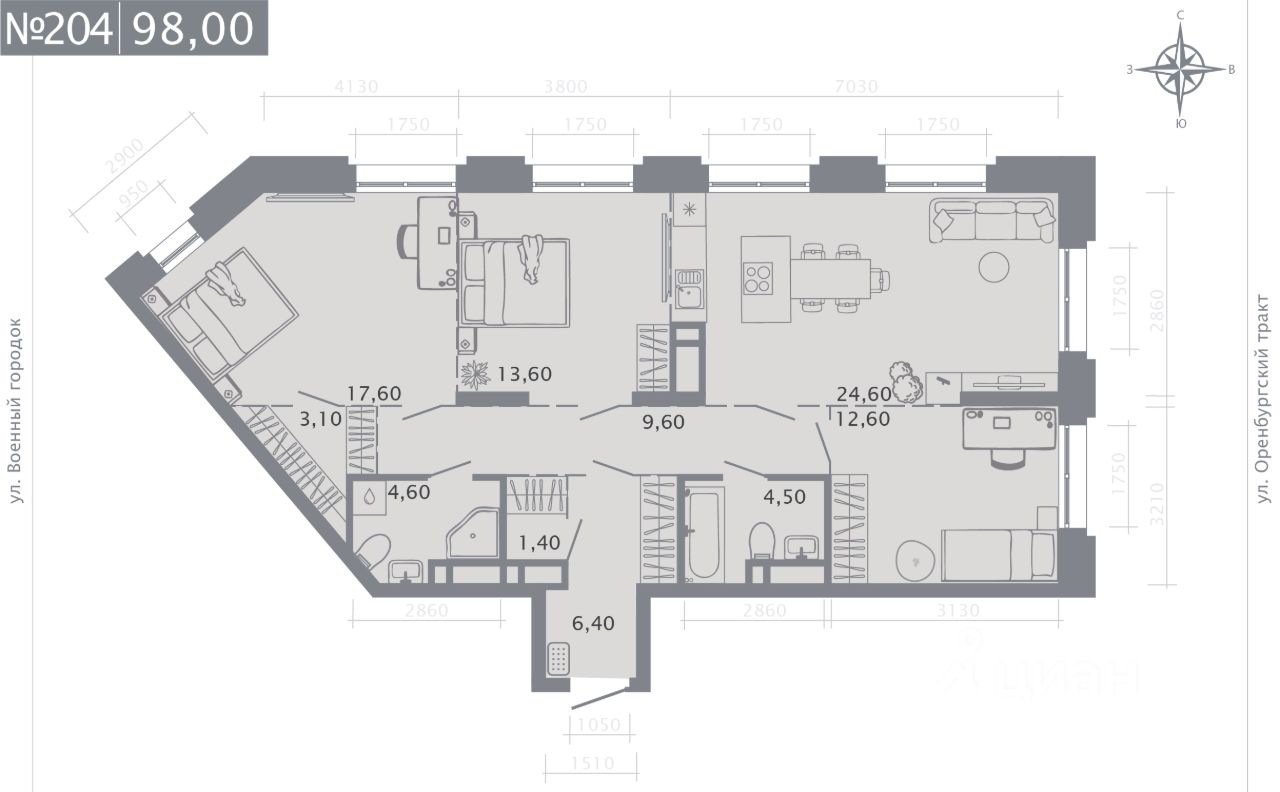 Продаётся 3-комнатная квартира в строящемся доме (Корпус 1), срок сдачи: II-кв. 2028, общей площадью 98 кв.м., на 2 этаже. Новый жилой комплекс "Оригана" от застройщика "КамаСтройИнвест" расположен по адресу: Россия, Республика Татарстан, Казань, улица Оренбургский Тракт