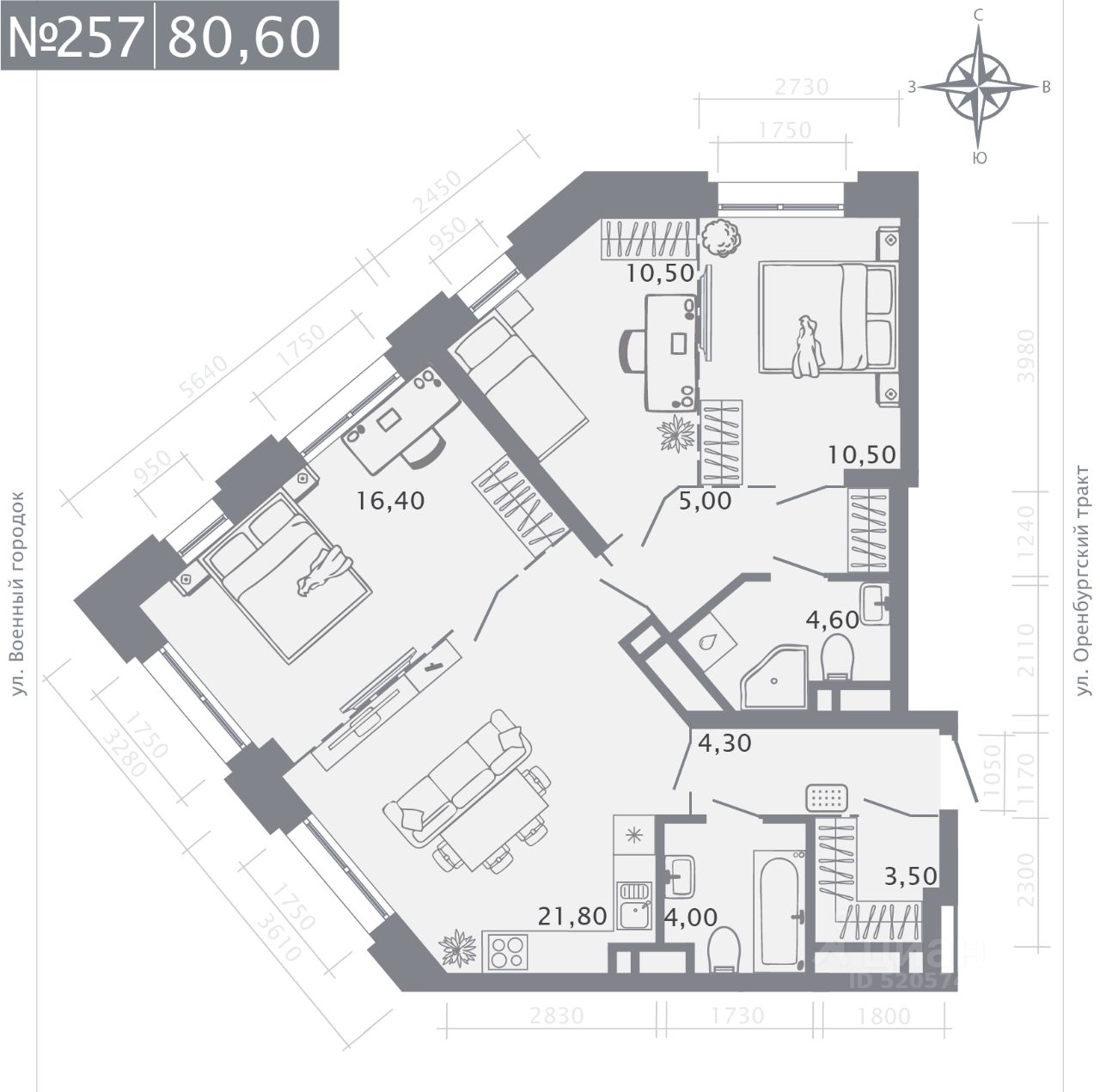 Продаётся 3-комнатная квартира в строящемся доме (Корпус 1), срок сдачи: II-кв. 2028, общей площадью 80.6 кв.м., на 9 этаже. Новый жилой комплекс "Оригана" от застройщика "КамаСтройИнвест" расположен по адресу: Россия, Республика Татарстан, Казань, улица Оренбургский Тракт