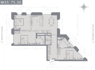Продаётся 3-комнатная квартира в строящемся доме (Корпус 1), срок сдачи: II-кв. 2028, общей площадью 75.3 кв.м., на 5 этаже. Новый жилой комплекс "Оригана" от застройщика "КамаСтройИнвест" расположен по адресу: Россия, Республика Татарстан, Казань, улица Оренбургский Тракт