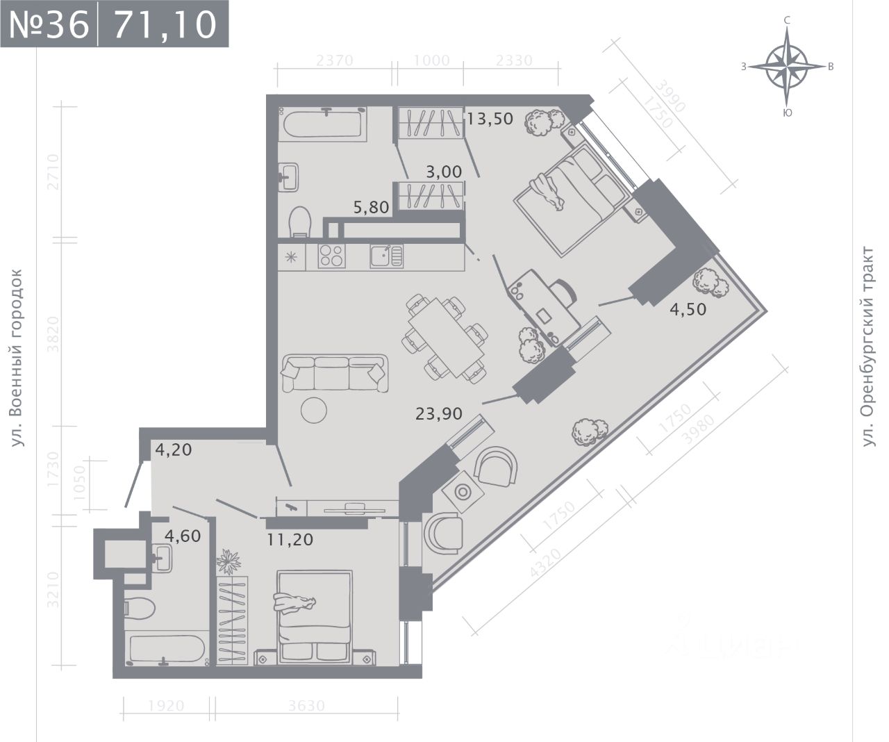 Продаётся 2-комнатная квартира в строящемся доме (Корпус 1), срок сдачи: II-кв. 2028, общей площадью 70.7 кв.м., на 6 этаже. Новый жилой комплекс "Оригана" от застройщика "КамаСтройИнвест" расположен по адресу: Россия, Республика Татарстан, Казань, улица Оренбургский Тракт