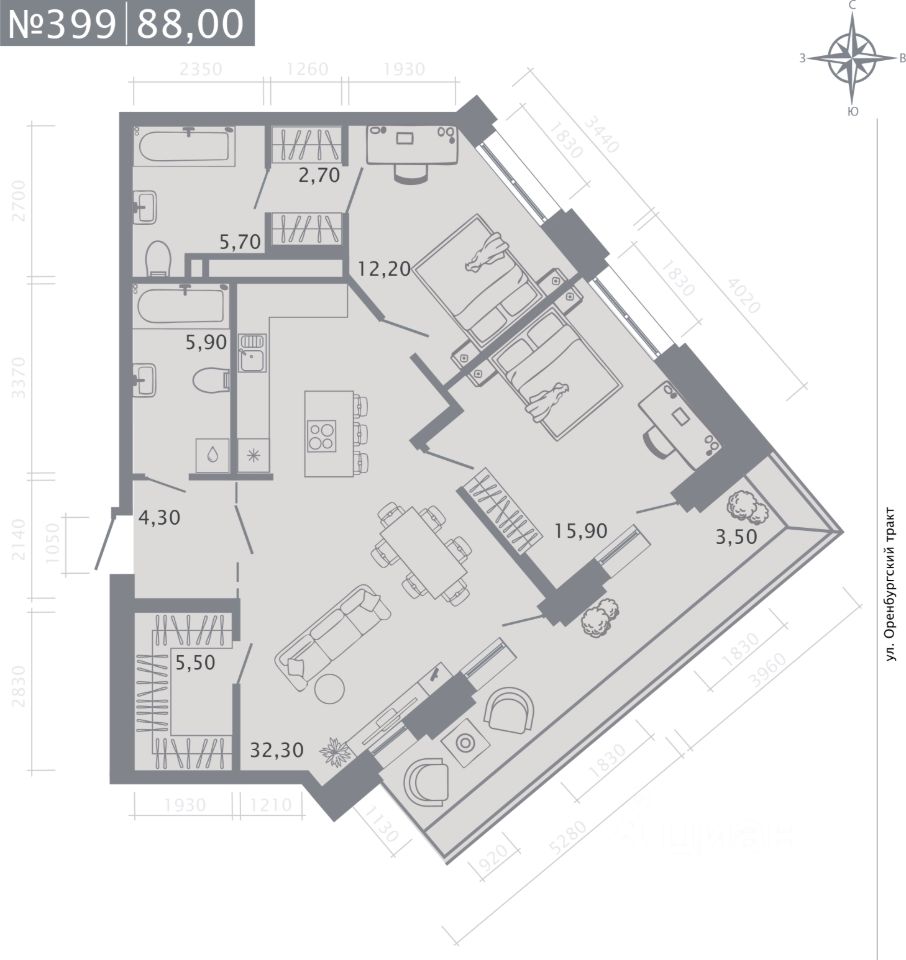Продаётся 2-комнатная квартира в строящемся доме (Корпус 1), срок сдачи: II-кв. 2028, общей площадью 88 кв.м., на 5 этаже. Новый жилой комплекс "Оригана" от застройщика "КамаСтройИнвест" расположен по адресу: Россия, Республика Татарстан, Казань, улица Оренбургский Тракт