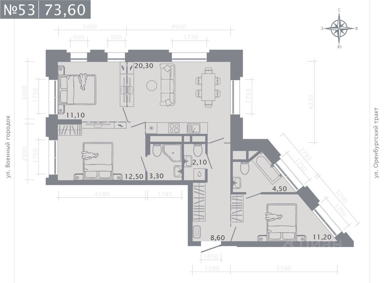 Продаётся 3-комнатная квартира в строящемся доме (Корпус 1), срок сдачи: II-кв. 2028, общей площадью 73.6 кв.м., на 8 этаже. Новый жилой комплекс "Оригана" от застройщика "КамаСтройИнвест" расположен по адресу: Россия, Республика Татарстан, Казань, улица Оренбургский Тракт