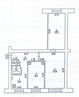 по улице Центральная дом 3, кирпичный дом, 1/5, общая площадь 58,4кв.м., без балкона.