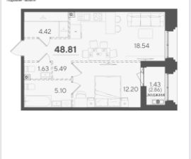 Функциональность: Раздельный санузел, наличие балкона (1.43 м²) и просторной кухни (8.54 м²) создают удобства для повседневной жизни.