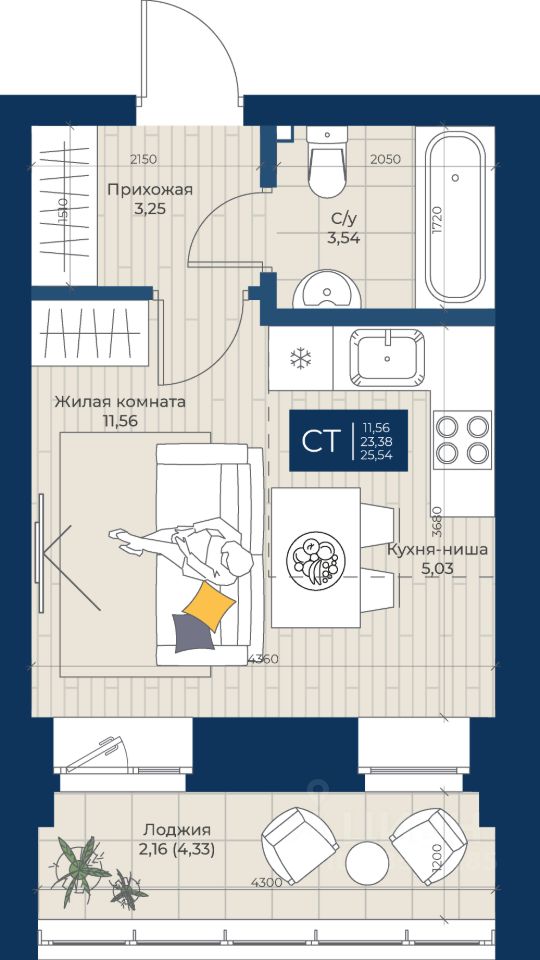 Продаётся студия в строящемся доме (Дом 1 - 2 этап), срок сдачи: IV-кв. 2025, общей площадью 25.54 кв.м., на 5 этаже. Почувствуйте особую атмосферу уюта и добрососедства в новом Френдли-комплексе #ТураНова
