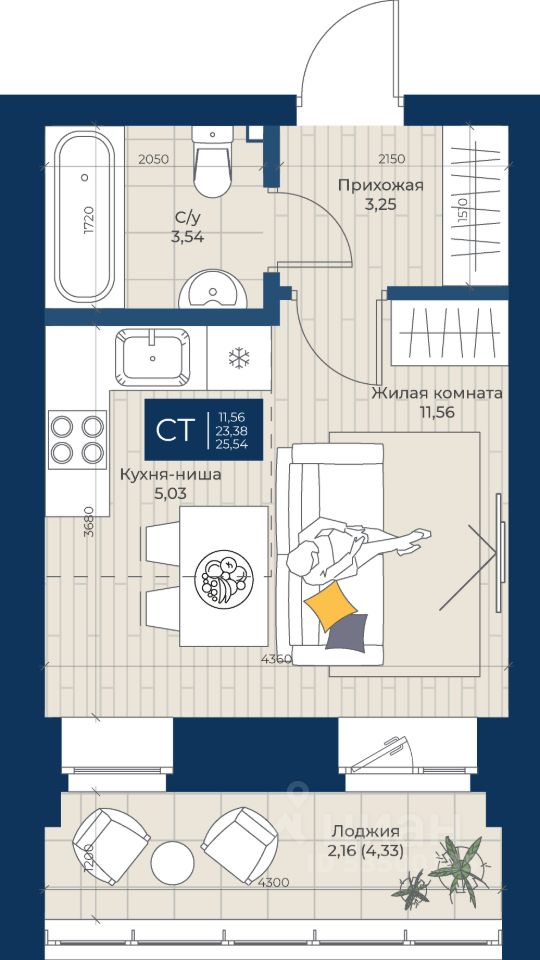 Продаётся студия в строящемся доме (Дом 1 - 2 этап), срок сдачи: IV-кв. 2025, общей площадью 25.54 кв.м., на 4 этаже. Почувствуйте особую атмосферу уюта и добрососедства в новом Френдли-комплексе #ТураНова