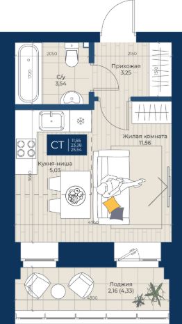 Продаётся студия в строящемся доме (Дом 1 - 2 этап), срок сдачи: IV-кв. 2025, общей площадью 25.54 кв.м., на 8 этаже. Почувствуйте особую атмосферу уюта и добрососедства в новом Френдли-комплексе #ТураНова
