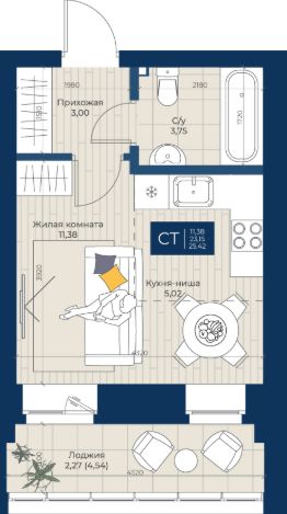 Продаётся студия в строящемся доме (Дом 1 - 2 этап), срок сдачи: IV-кв. 2025, общей площадью 25.42 кв.м., на 9 этаже. Почувствуйте особую атмосферу уюта и добрососедства в новом Френдли-комплексе #ТураНова