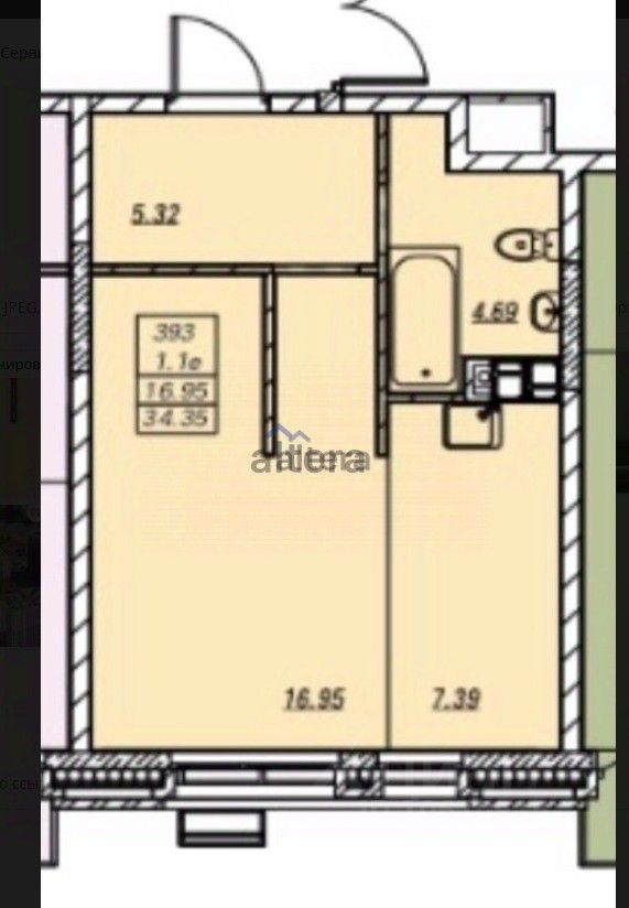 Арт. 125289812 Продается уютная, просторная студия 34,35 кв.м. ПЕРЕУСТУПКА