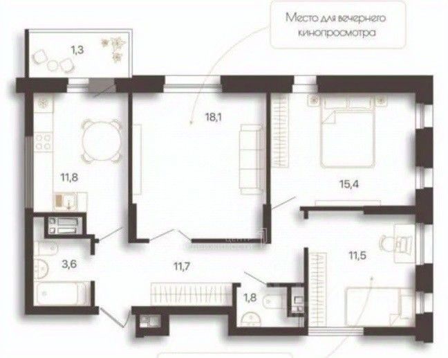 3комнатная квартира с лучшей планировкой в комплексе (всего 8 таких квартир в ЖК).
